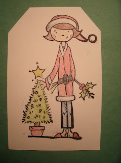 Using the stamps that came with my Creativity magazine a little while back, I simple stamped the image onto a piece of card, then used pencil to colour it in, before cutting out the tag shape. Very simple, but I've got so much to do and so little time before Christmas that I thought it wouldn't matter! :)